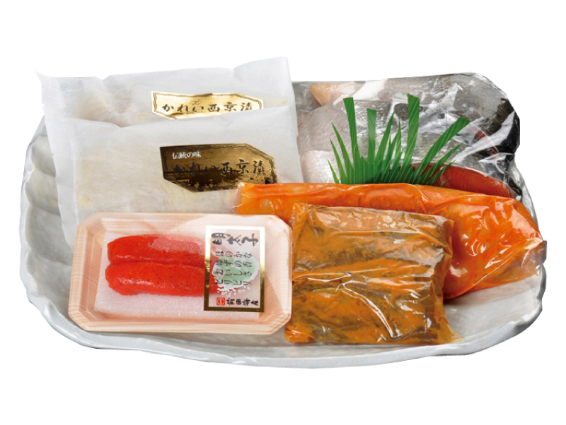 法要会、大切な方の引き出物、ギフトに、築地直送の旬魚の切り身を詰め合わせた《特製切り身折り》をご利用下さい。発泡スチロール箱にて包装。また地方へはチルド配送も承ります。