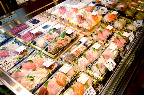 豊洲直送の新鮮な魚介類や職人手仕込み手造りの商品が毎日日替わりで並びます。豊富に取り揃えて皆様のご来店をお待ちしております。